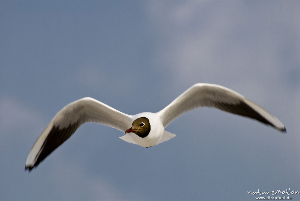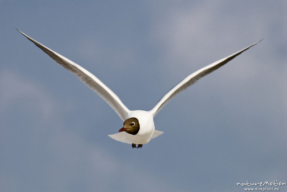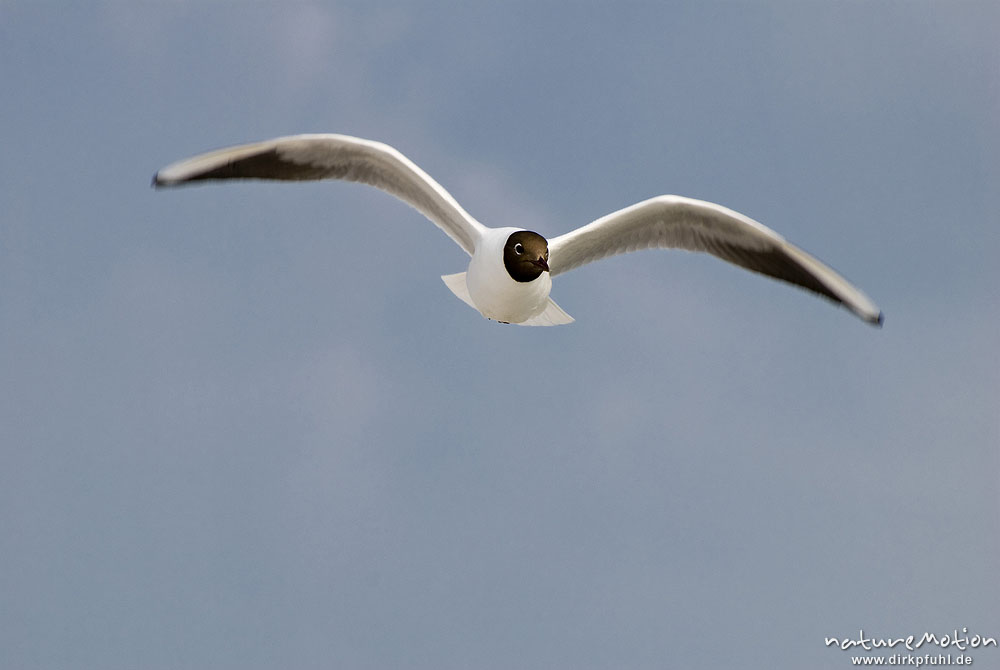 Lachmöwe, Larus ridibundus, Laridae, Tier in Flug, Gesicht ...