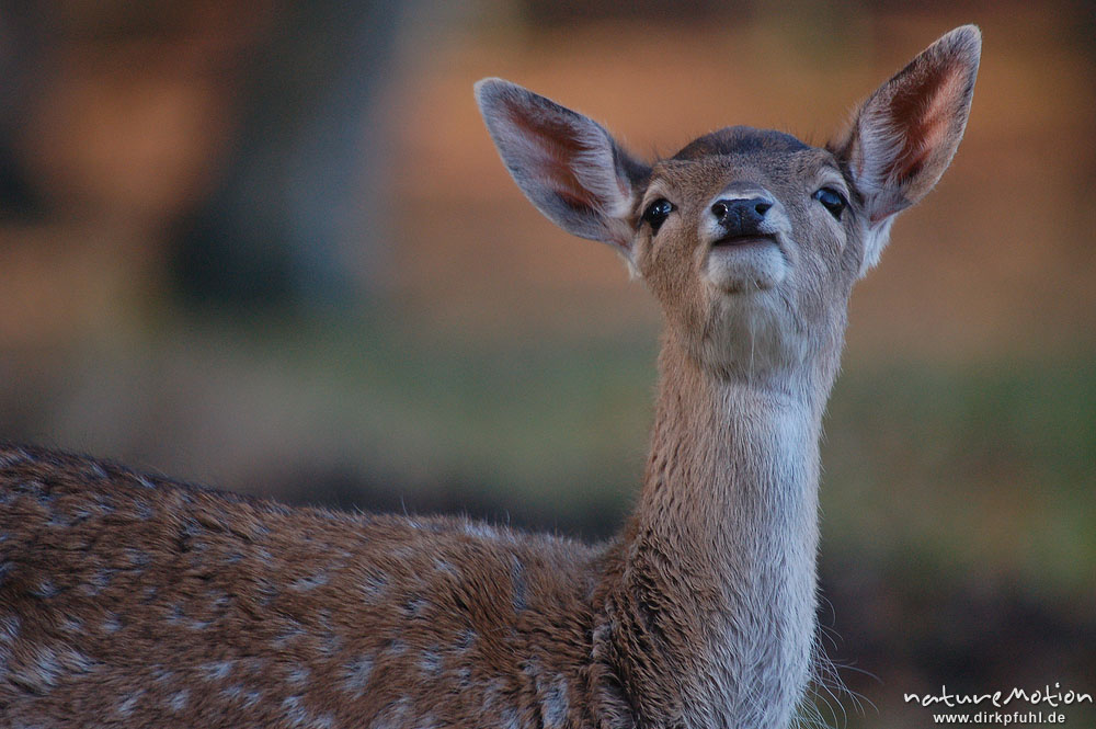 Damhirsch, Dama dama, Cervidae, , Jungtier (Kitz), Vogelkoje ...