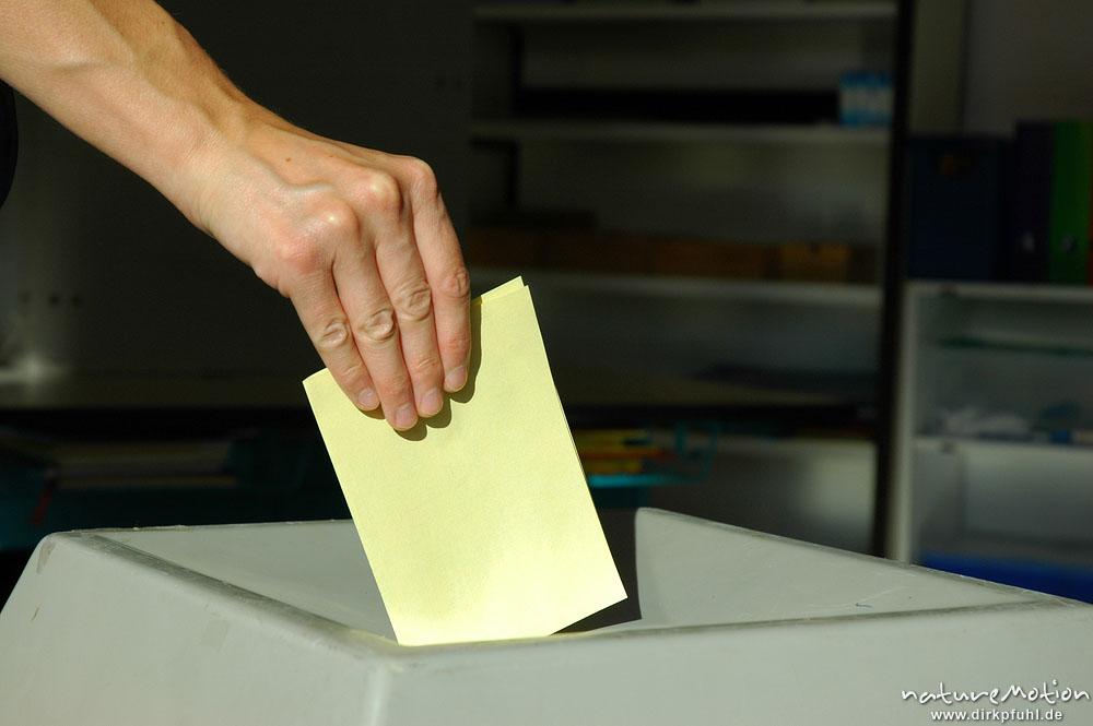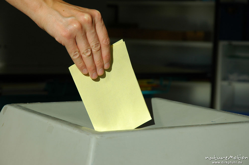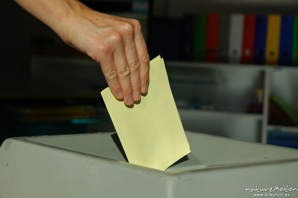 Abgabe eines Wahlzettels in die Wahlurne, Wahl des Oberbürg ...