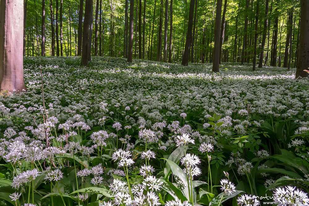 Bärlauch, Allium ursinum, Liliaceae, dichter Bestand blühe ...