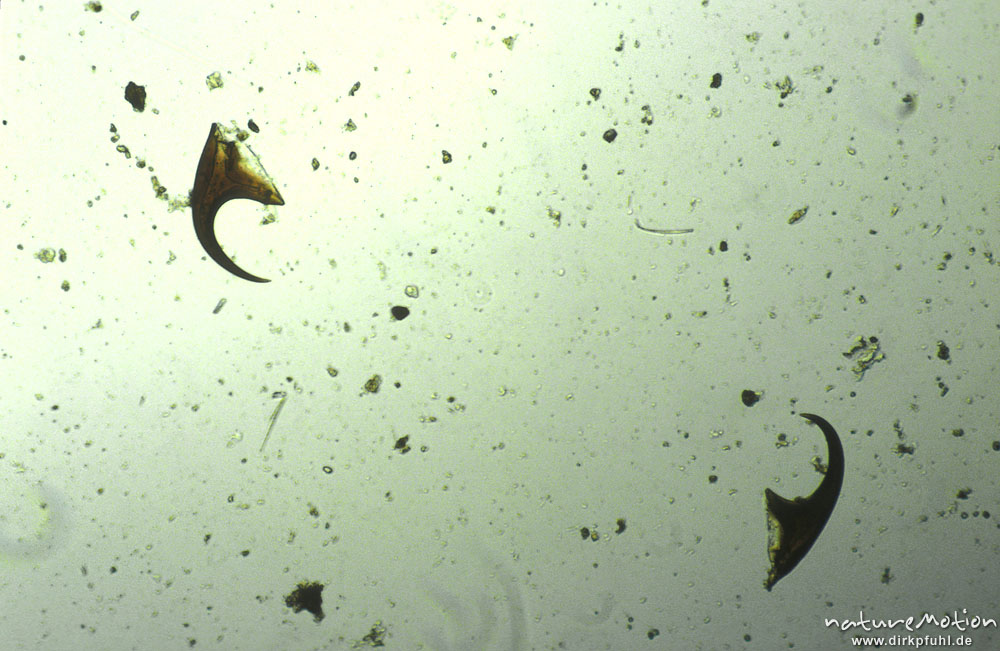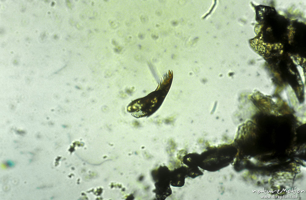 Dytiscidae, Kralle, mikroskop. Aufnahme, Nahrungsrest C. bol ...