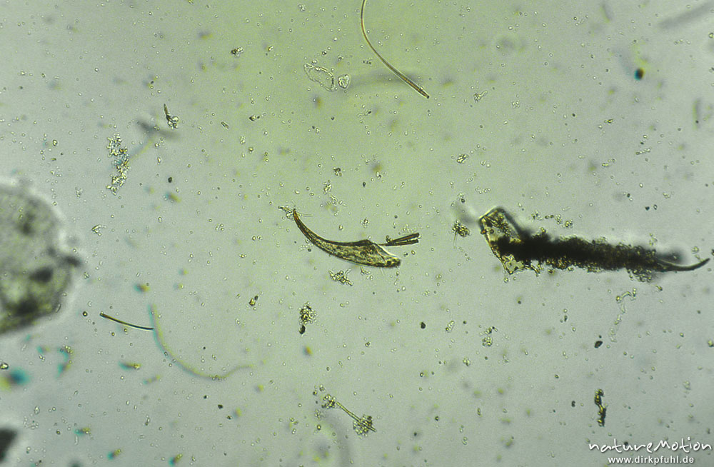 Oligochaeta, Borsten, mikrosk. Aufnahme, Nahrungsrest C. bol ...
