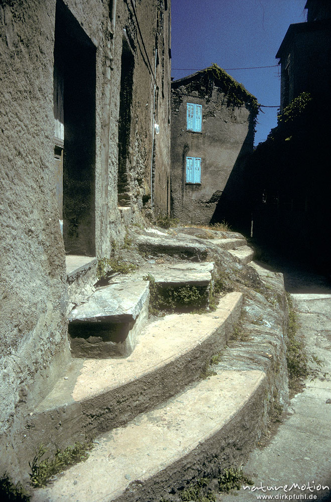 steinerne Treppe, schmale Gasse und Hausfassaden, Bergdorf, ...