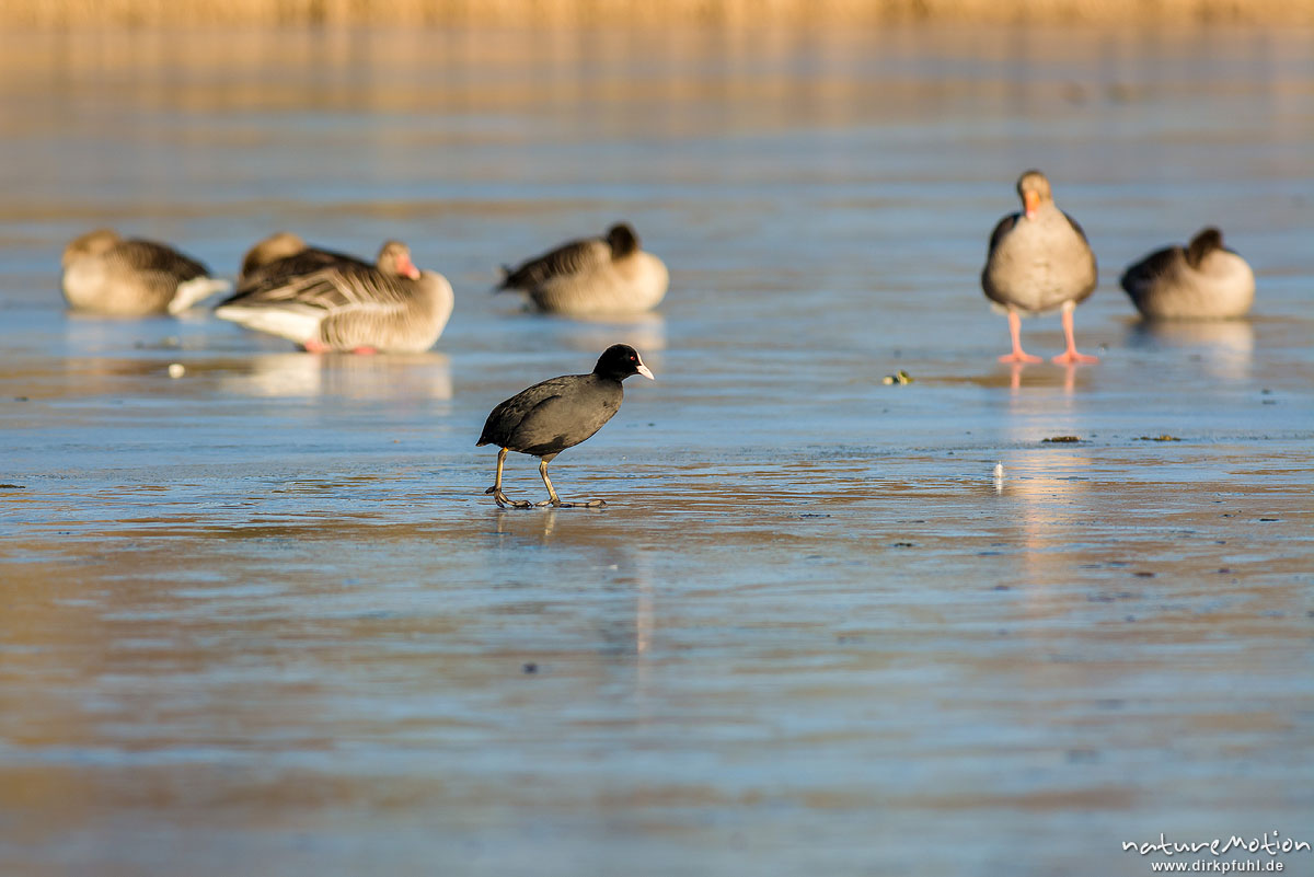 Bläßhuhn, Bläßralle, Fulica atra, Rallidae, ca 50 Tiere ...