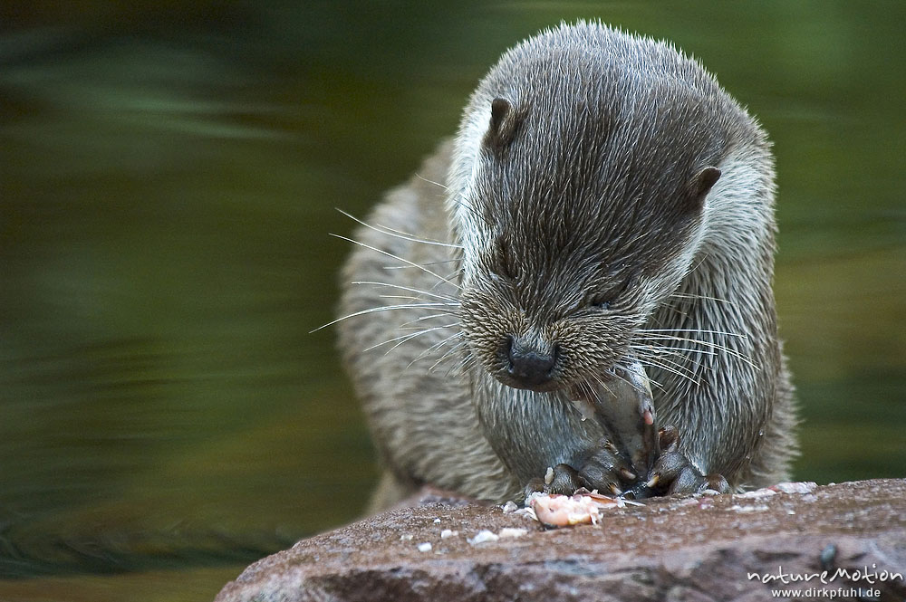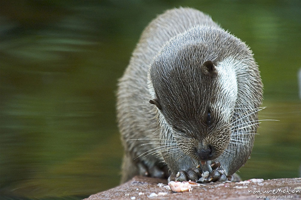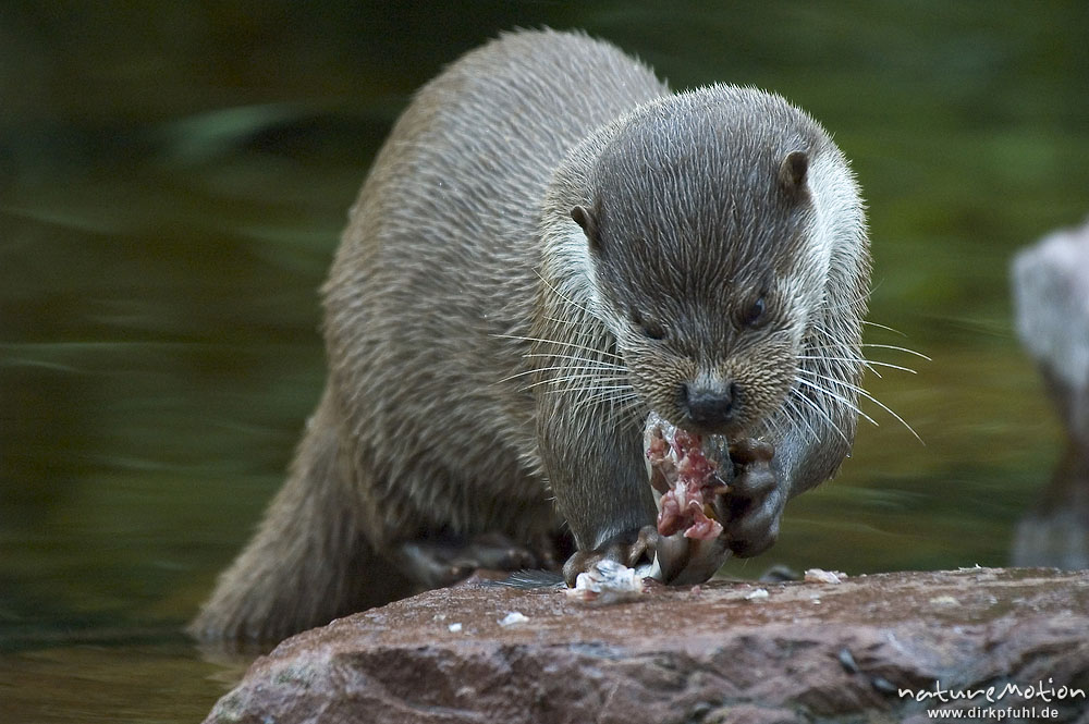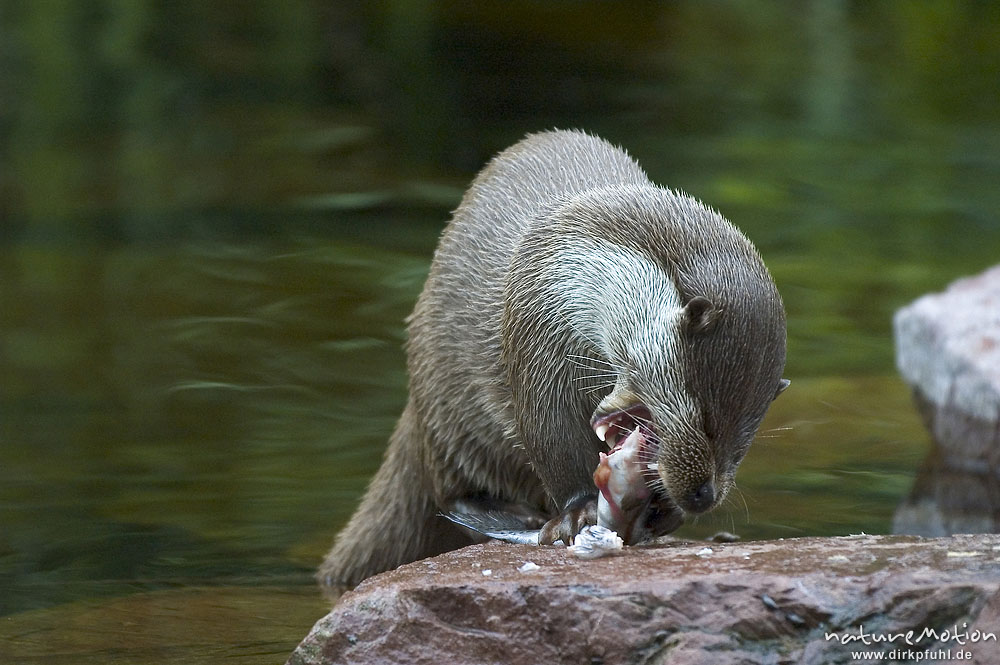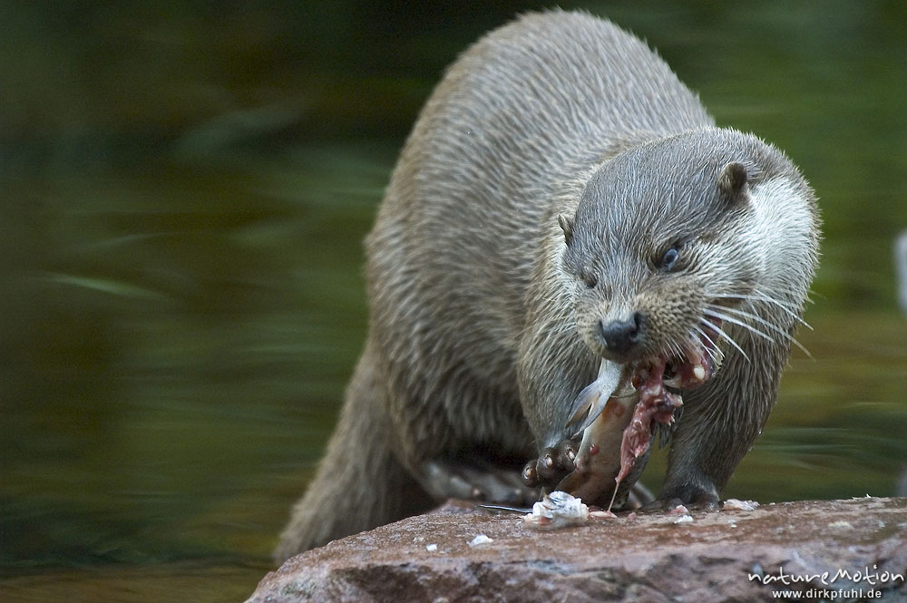 Fischotter, Lutra lutra, Mustelidae, beim fressen eines Fisc ...