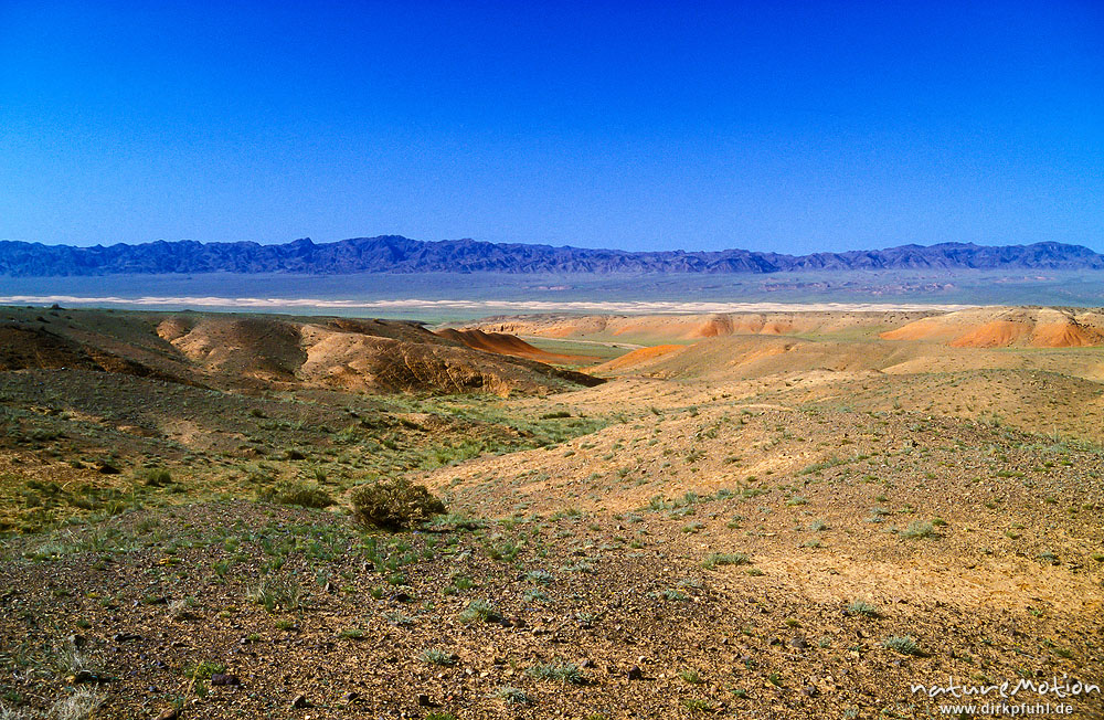 erodierte Gebirgszüge des Gurwan Saichan Gebirges, mit schà ...
