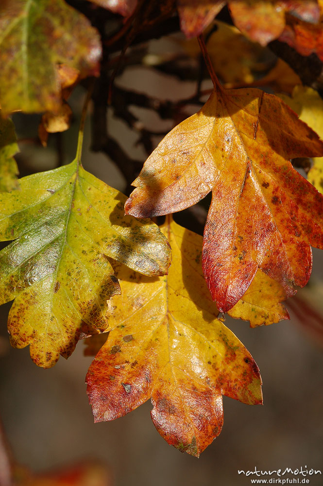 Spitzahorn, Blätter mit Herbstfärbung, lange belichtungsze ...