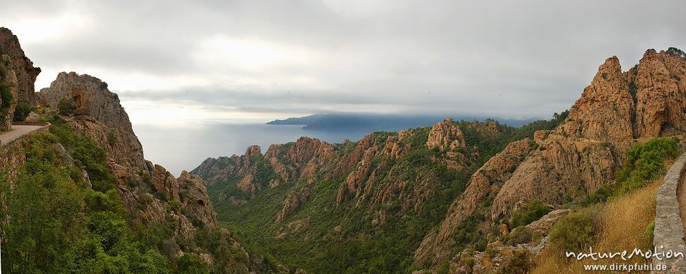 Calanche, Felsen und Blick auf den Golf von Porto, Straße, ...