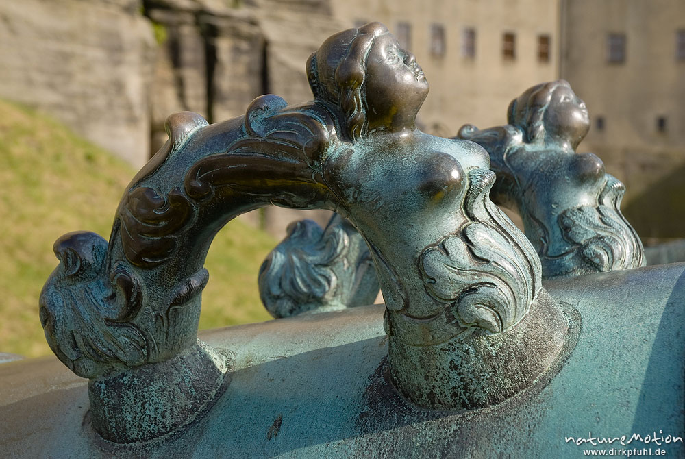 Bronzefiguren an Kanonen, Festung Königstein, Königstein, ...