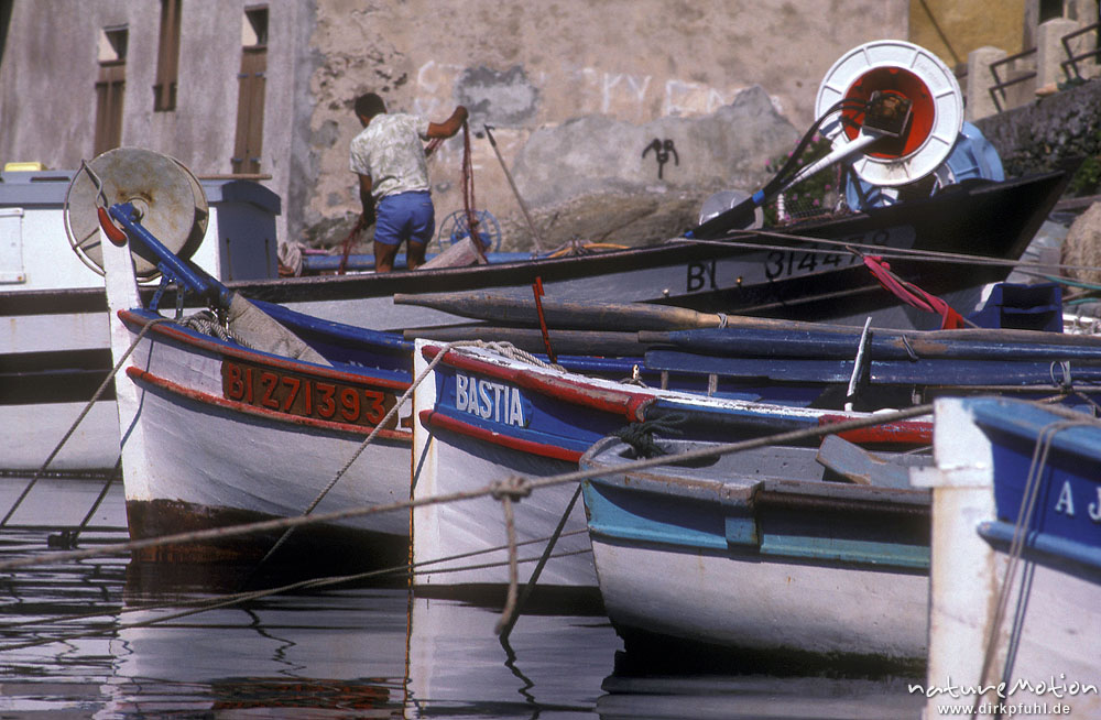 Rümpfe von Fischerbooten, Port de Centuri, Hafen, Korsika, ...