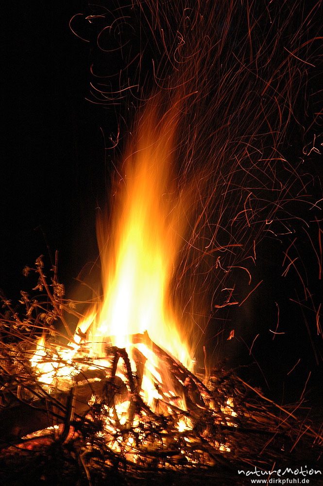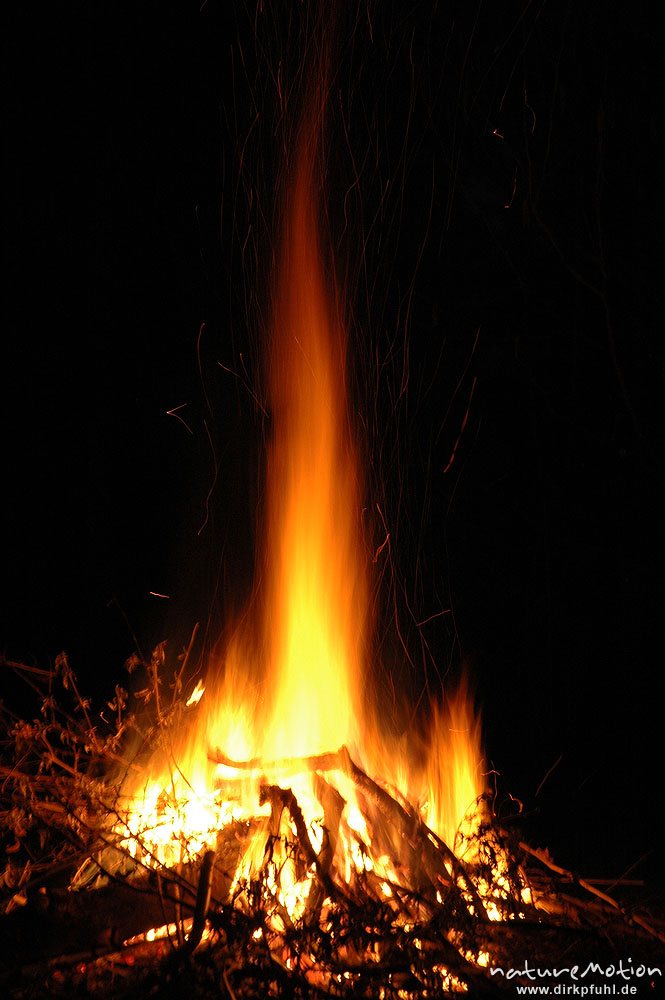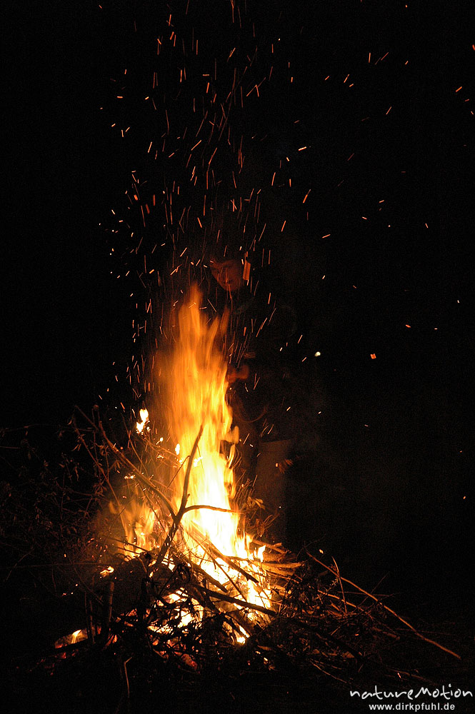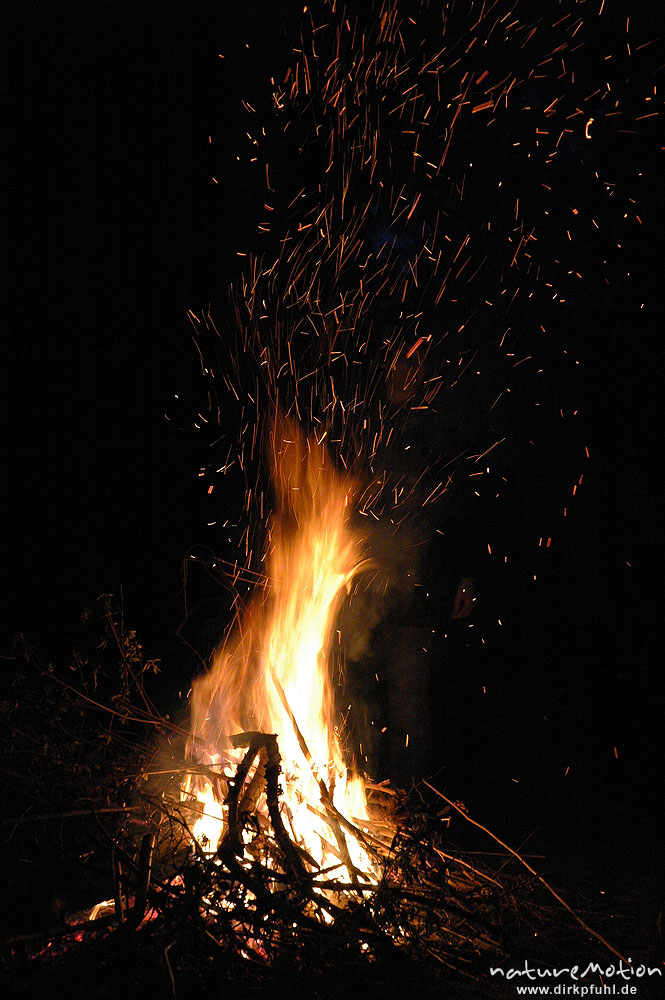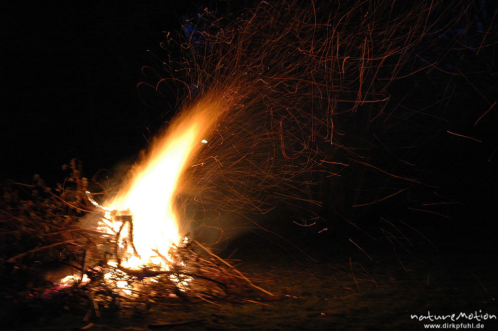 Osterfeuer im Garten von Renate Karwehl, Funkenflug, Flammen ...