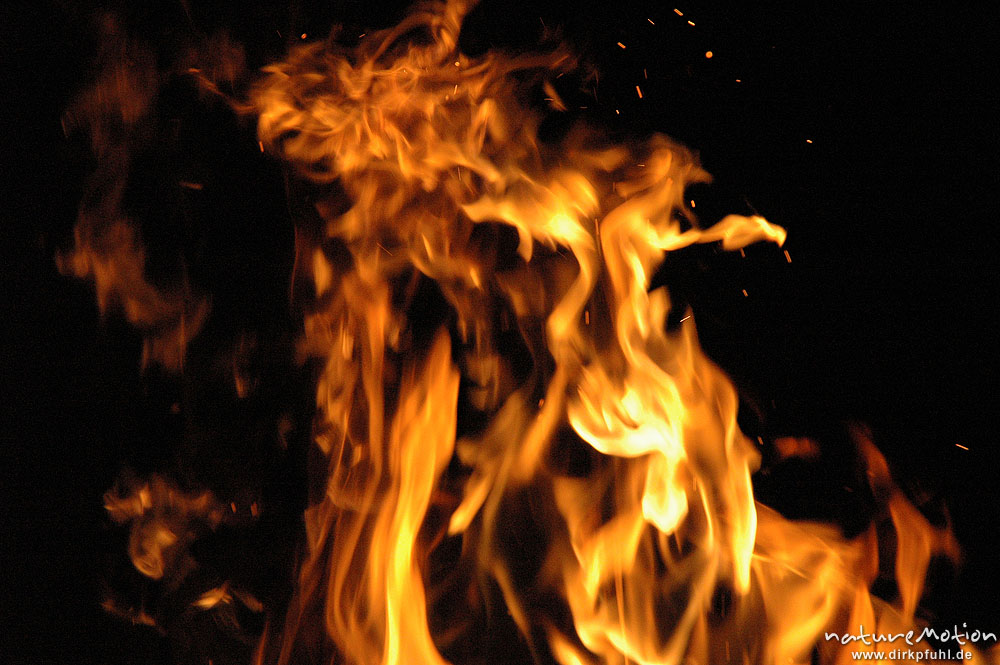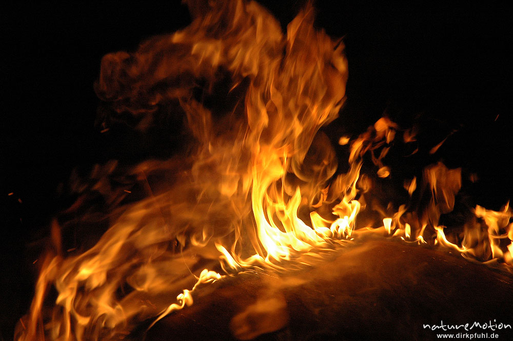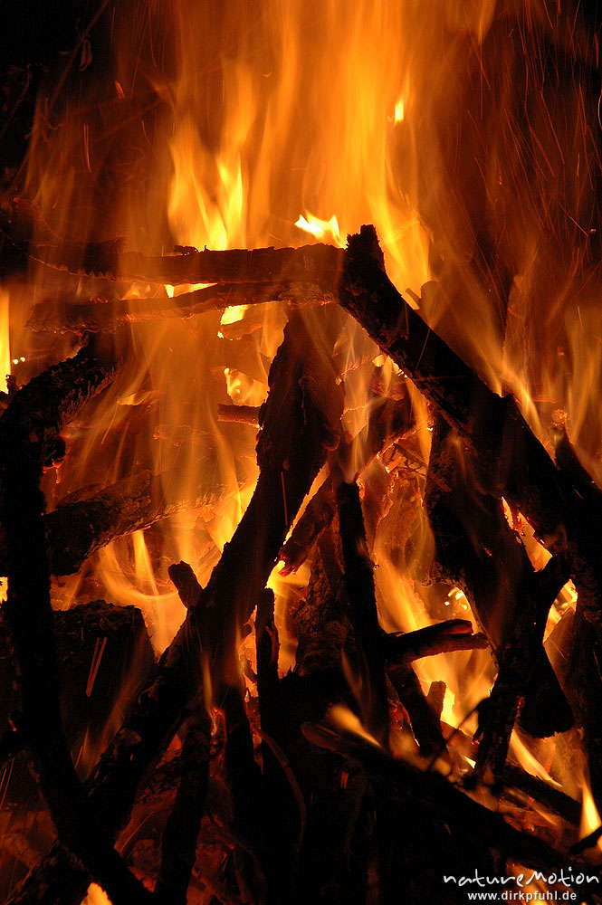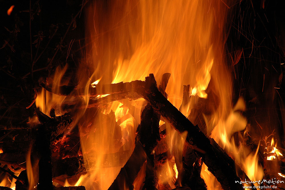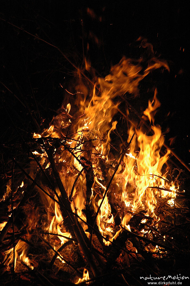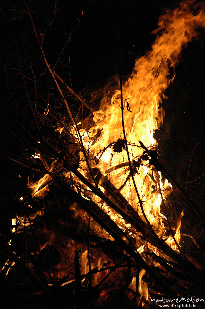 Osterfeuer im Garten von Renate Karwehl, Funkenflug, Flammen ...