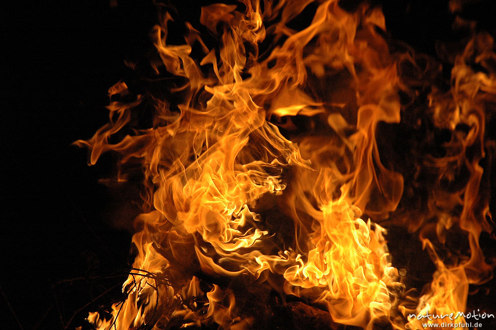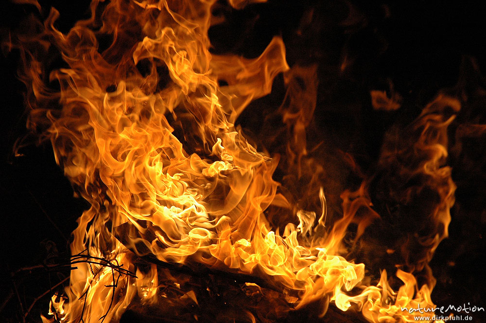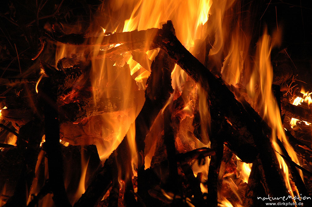 Flammen, Osterfeuer im Garten von Renate Karwehl, Hamburg, D ...