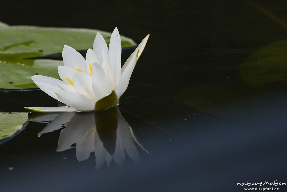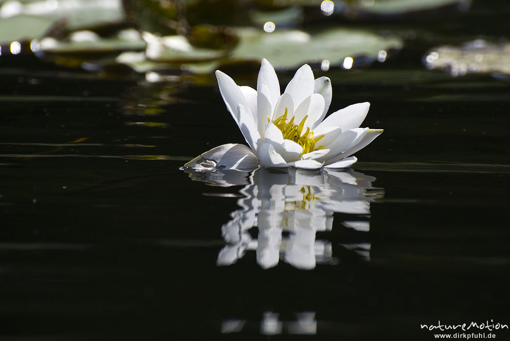 Seerose, Nymphaea alba, Nymphaeaceae, Blüte mit Spiegelung, ...
