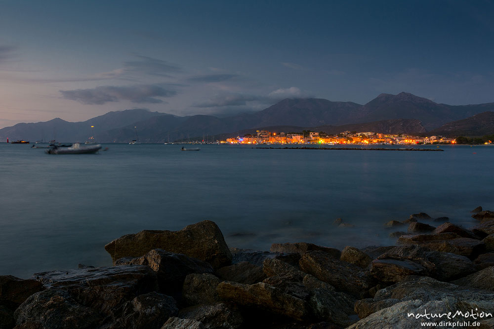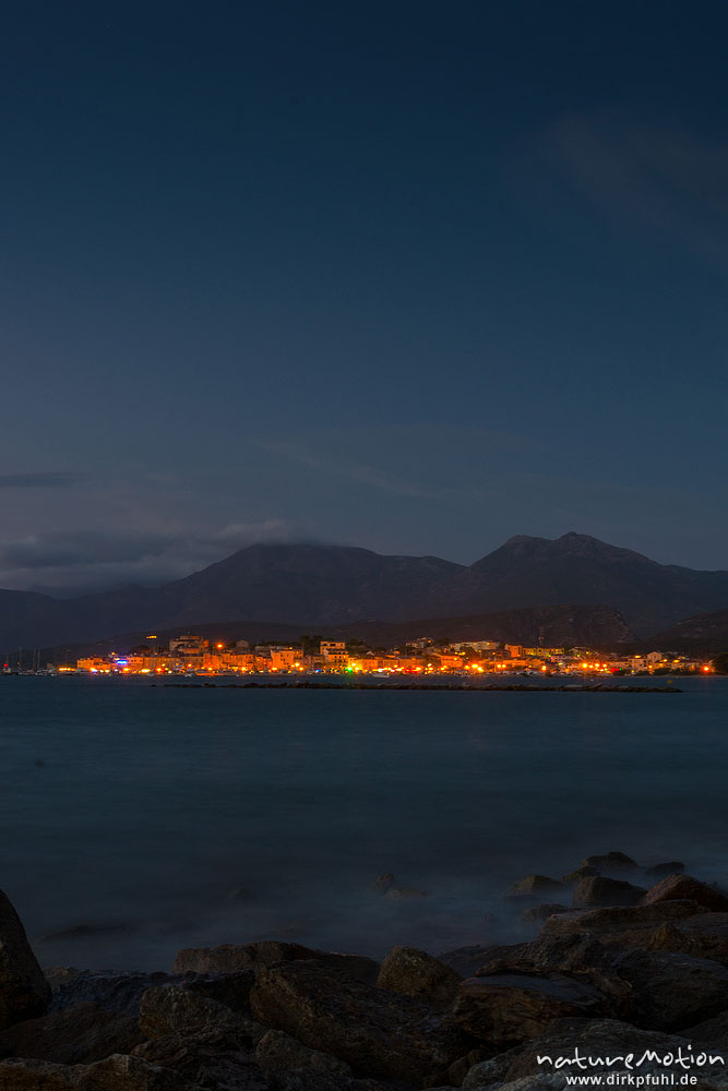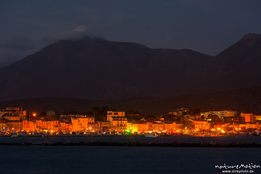 Saint Florent am Abend, Blick über die Bucht auf die erleuc ...
