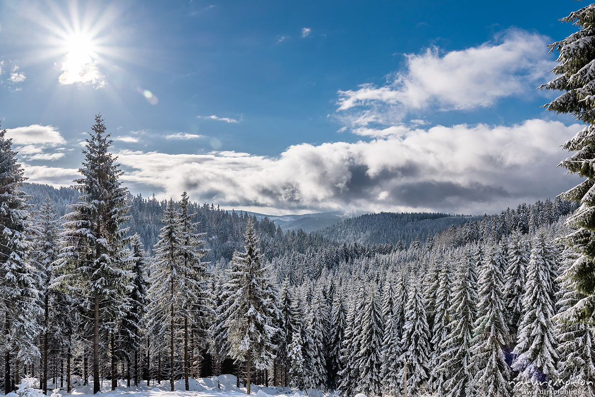 verschneiter Fichtenwald, St. Andreasberg (Harz), Deutschlan ...