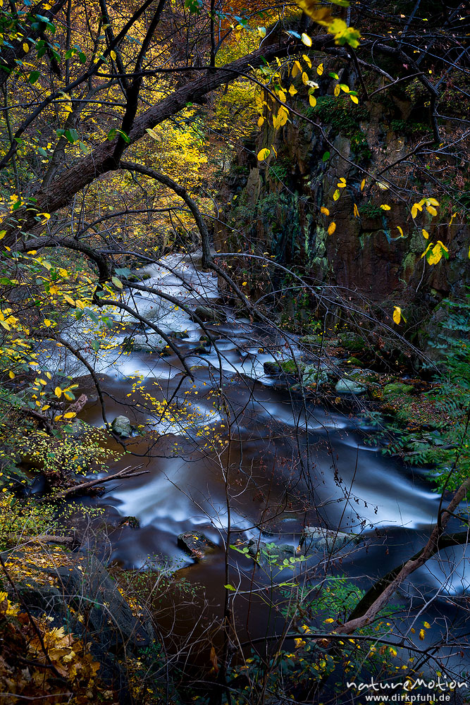 Bachlauf im Herbstwald, Bode, Bodetal, Harz, Deutschland ...