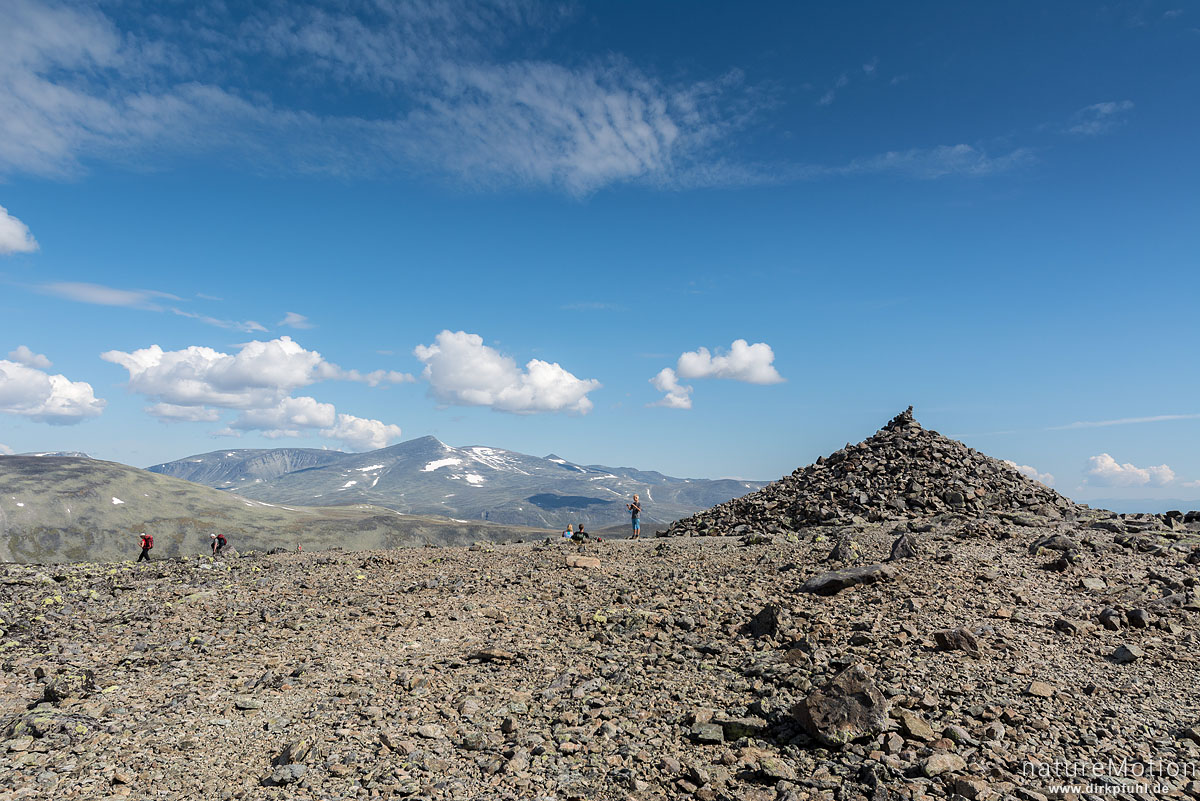 Steinpyramide am Gipfel des Veslfjellet, Jotunheimen, Norweg ...