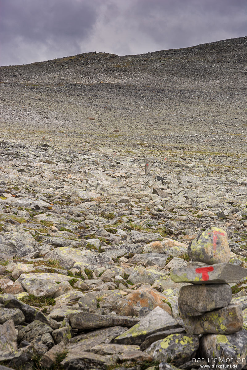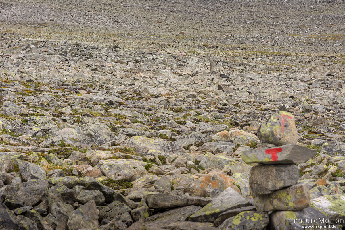 Geröllfeld mit markiertem Wanderweg, Wanderweg Glitterheim ...