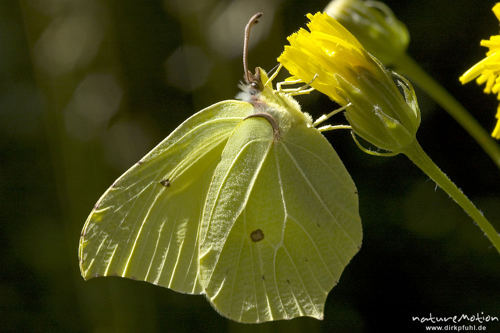 Zitronenfalter, Gonepteryx rhamni, Pieridae, an Korbblütler ...