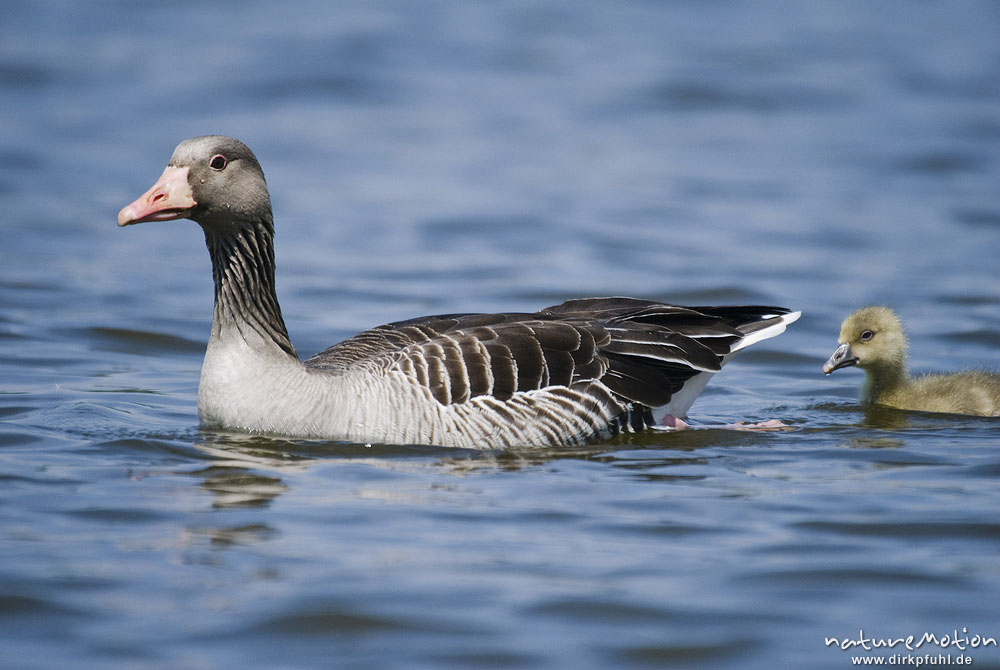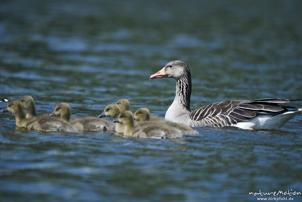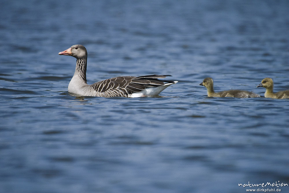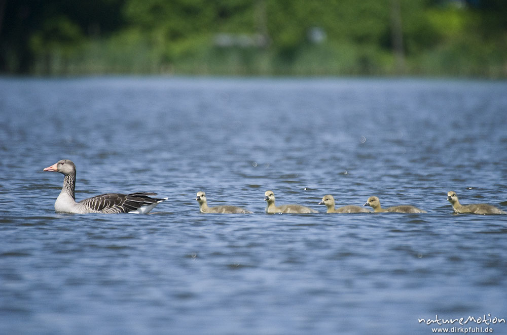 Graugans, Anser anser, Anatidae, Familienverband mit Küken, ...