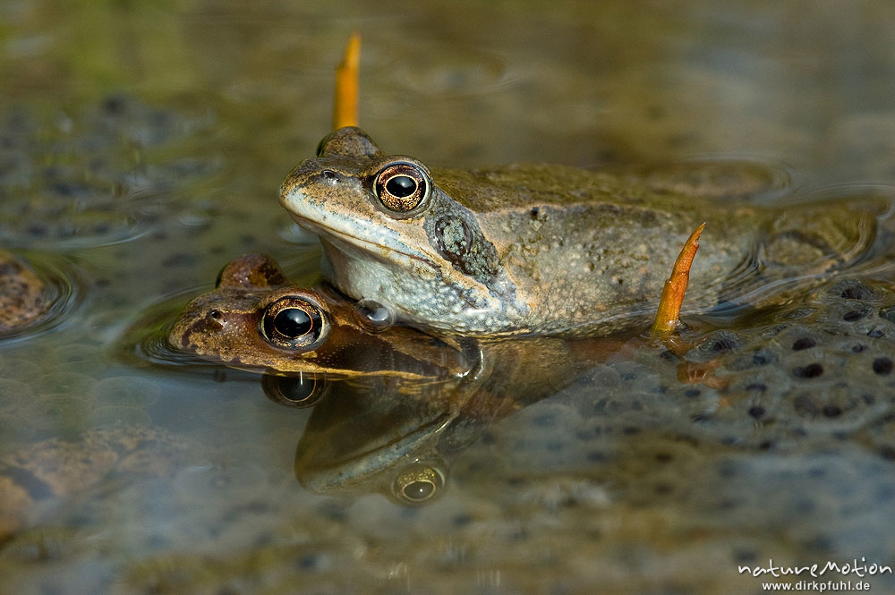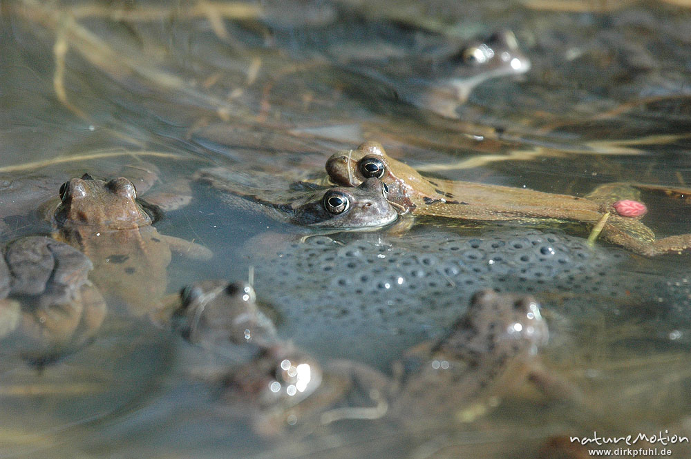 Grasfrosch, Rana temporaria, Ranidae, Laichballen im Wasser, ...