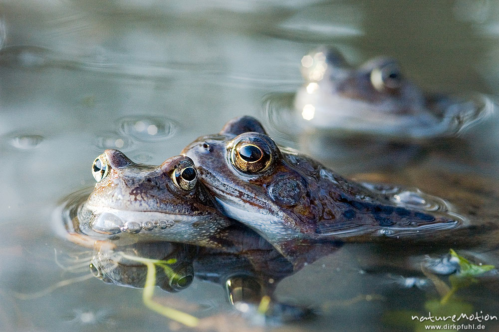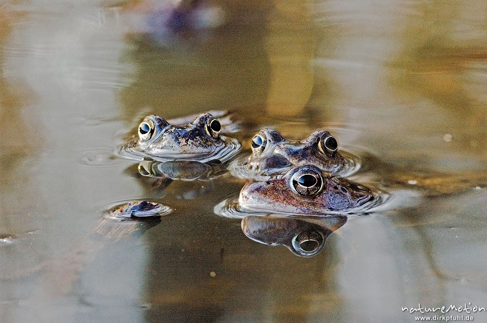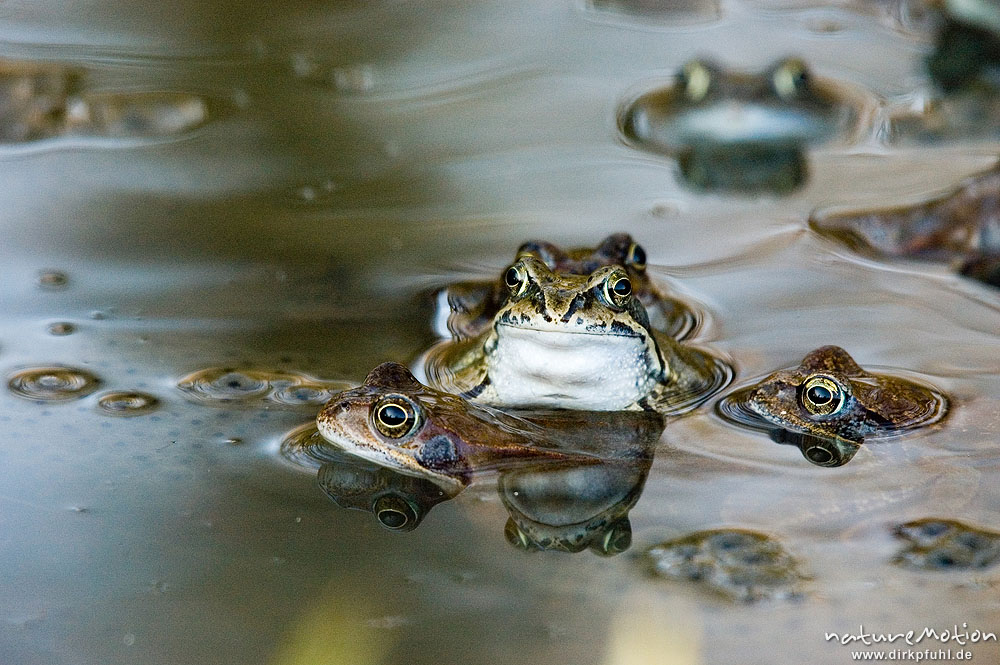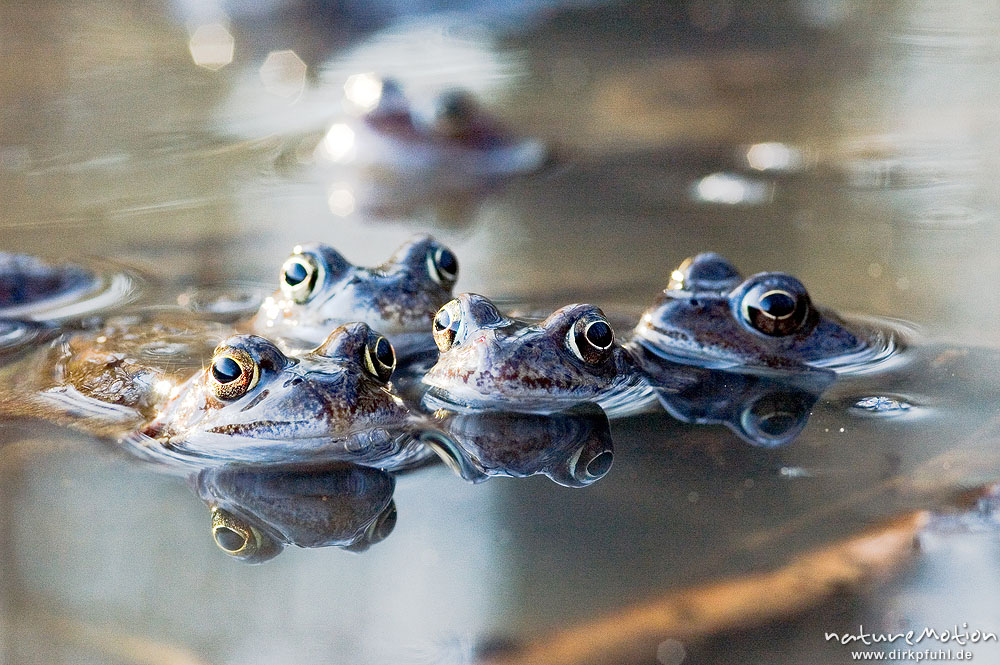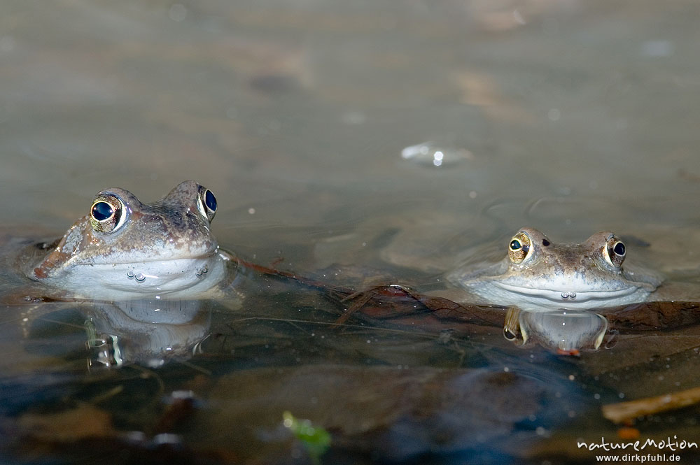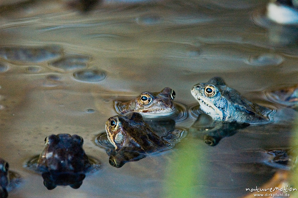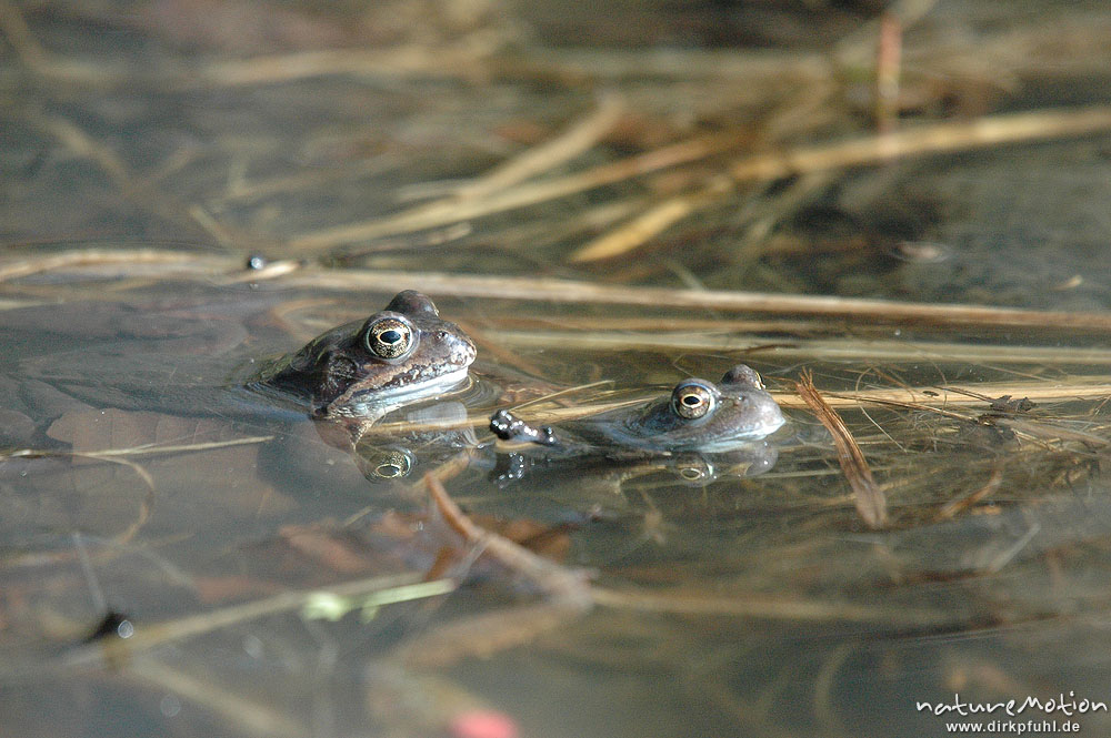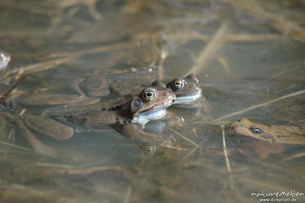 Grasfrosch, Rana temporaria, Paare und Einzeltiere im Wasser ...