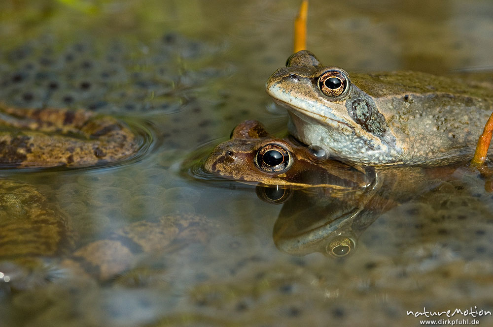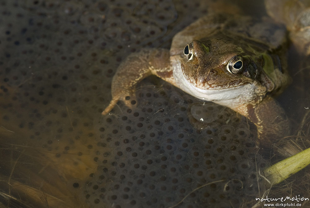 Grasfrosch, Rana temporaria, Ranidae, Tier zwischen Laichbal ...