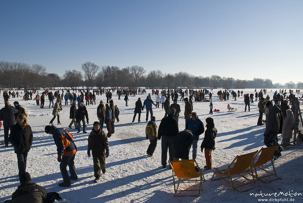 Schlittschuhläufer auf dem Göttinger Kiessee, Eis freigege ...