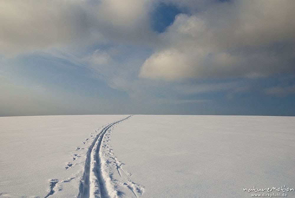 Skispur in unberührter Schneedecke, Himmel, Göttingen, Deu ...