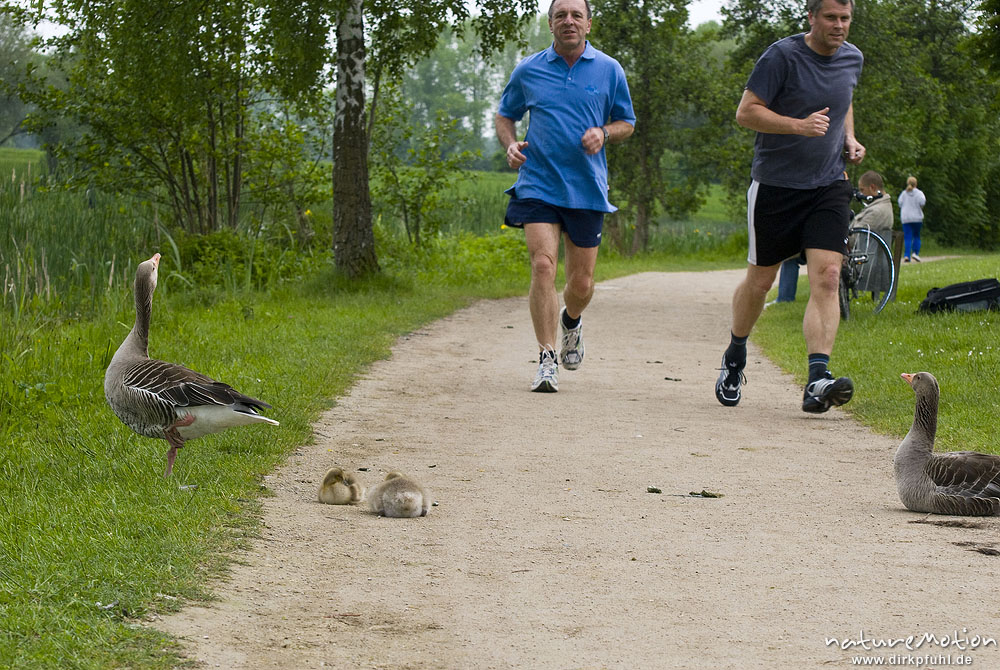 Graugans, Anser anser, Anatidae, Alttiere und Küken sitzen ...