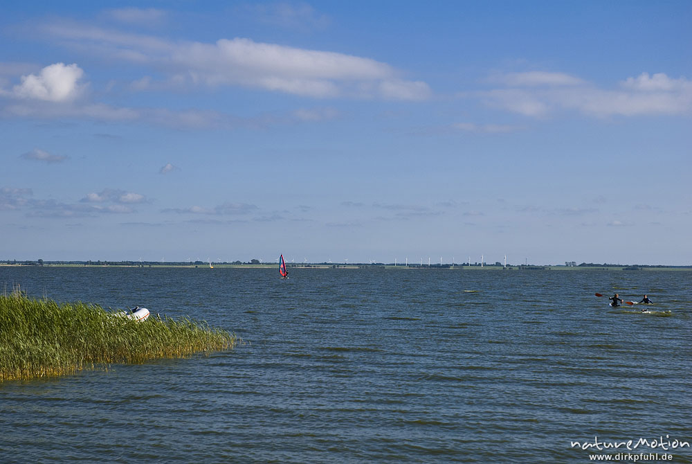 Boddenküste mit Badestelle und Schilfgürtel, Windsurfer, P ...