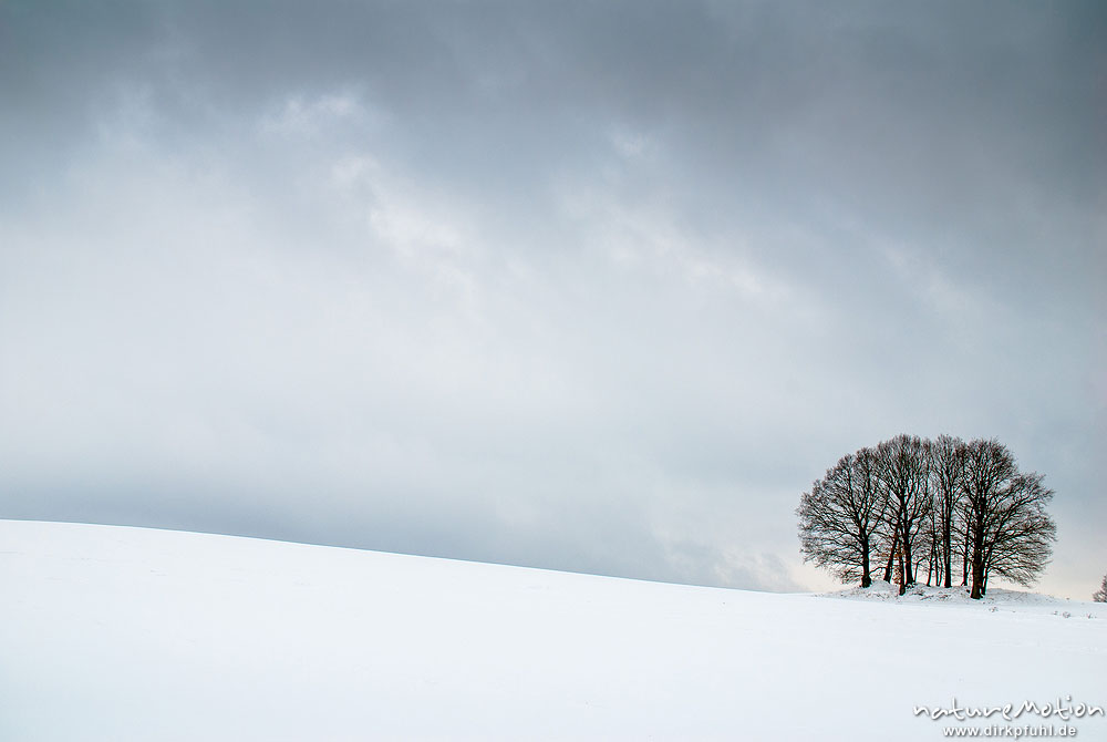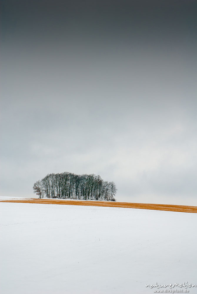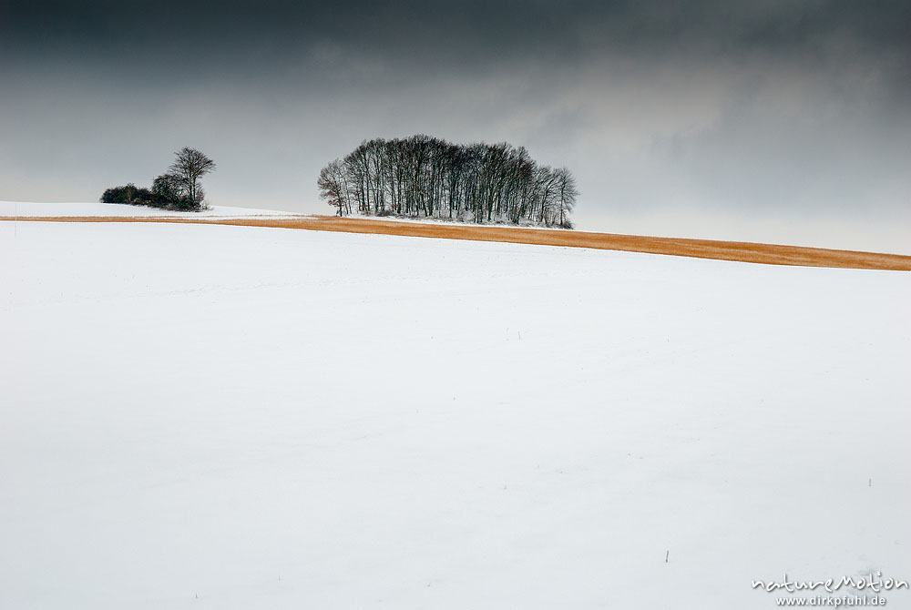 Äcker und Wiesen, bedeckt von Schnee, Nebel, Lichtenhagen b ...