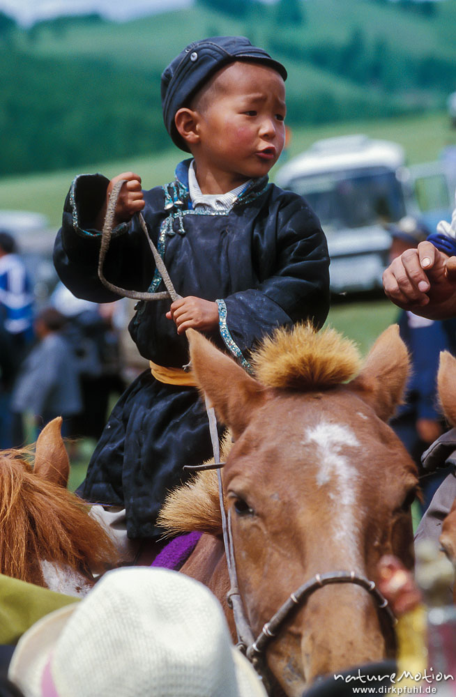 kleiner Junge auf Pferd, Mongolei, , Mongolei ...