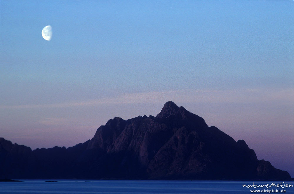 Mond über Felsküste, helle Nacht nördlich des Polarkreise ...