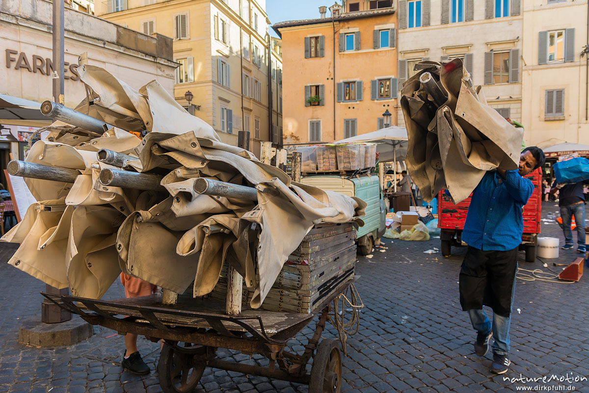 Marktplatz Campo de Fiori, Abbau der Marktstände, Rom, Ital ...