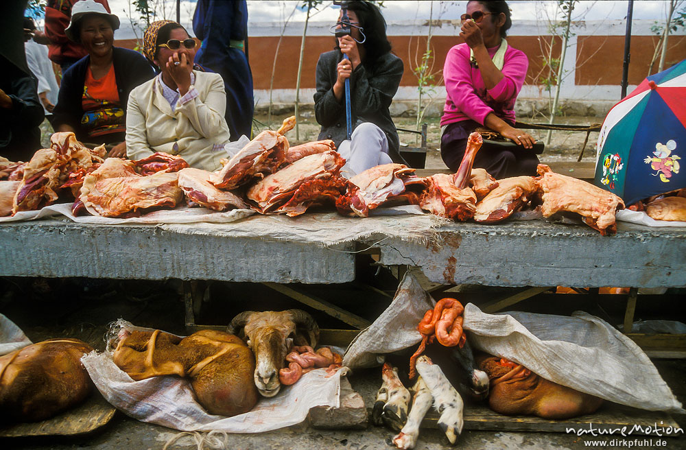 Fleischverkäufer und ihre Ware, Markt von Chowd, Chowd, Mon ...