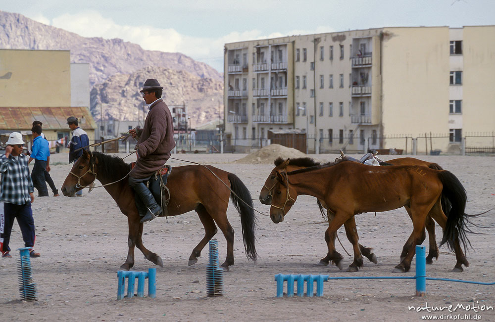 Pferde, Marktplatz von Chowd, Chowd, Mongolei ...