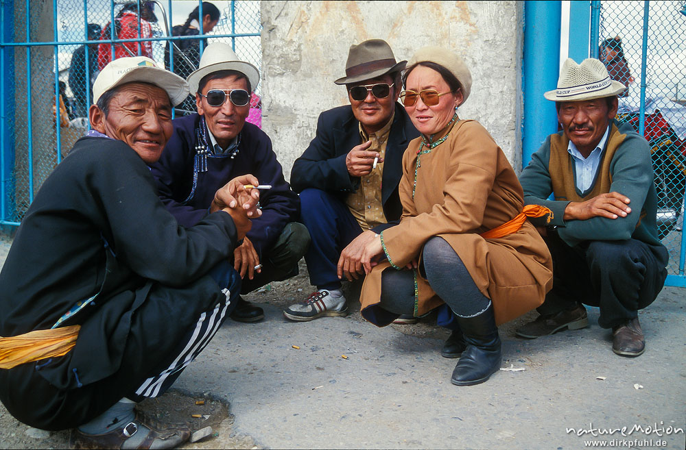 zwei Männer sich gegenüber sitzend am Boden, Markt von Cho ...