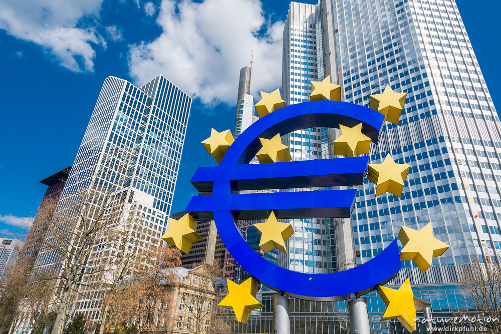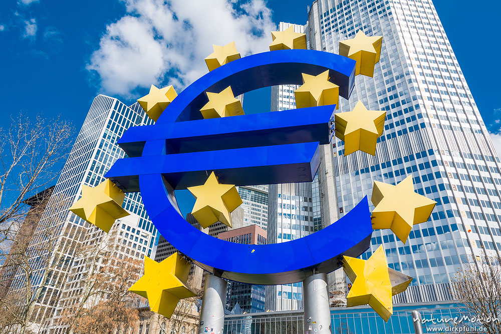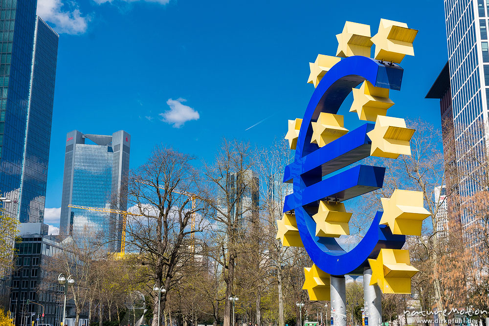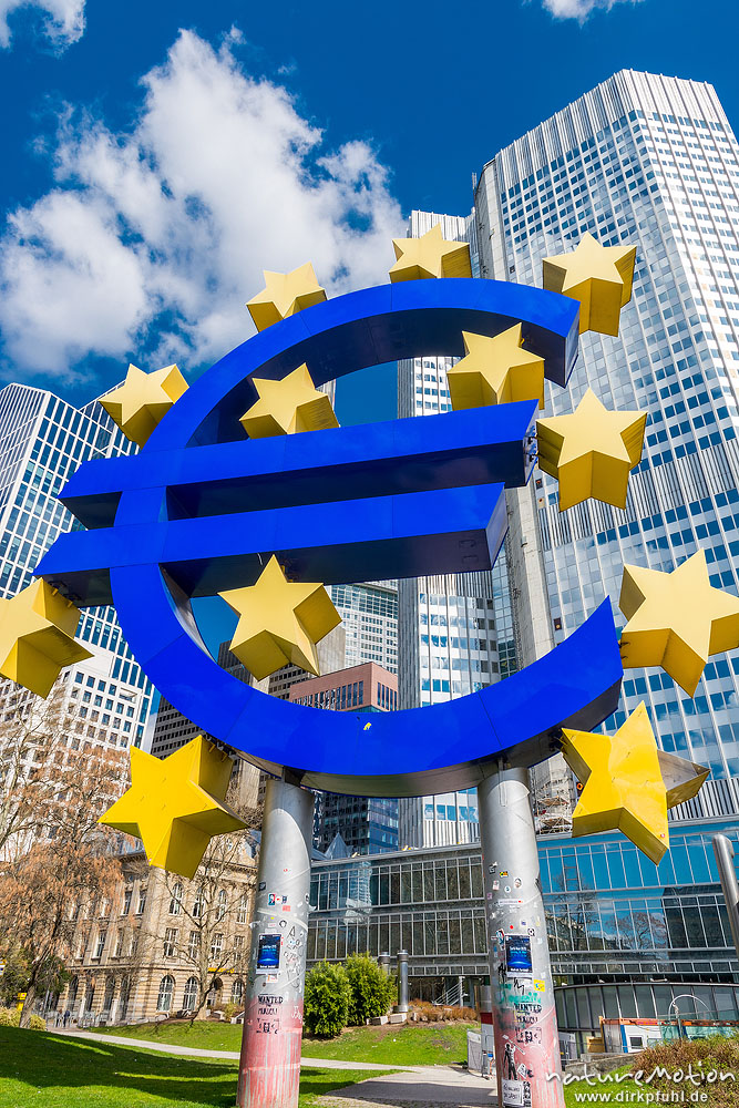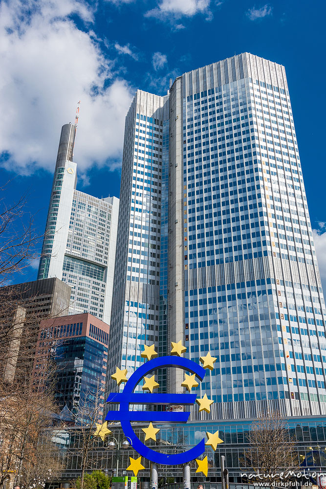 grosse Euro-Skulptur vor dem alten Gebäude der EZB, , ...