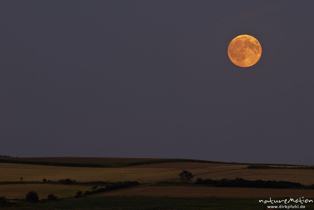 Mond, Vollmond, kupferfarben, kurz nach Mondaufgang über Ge ...