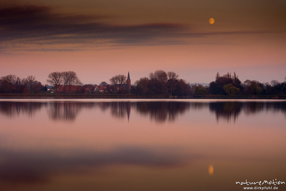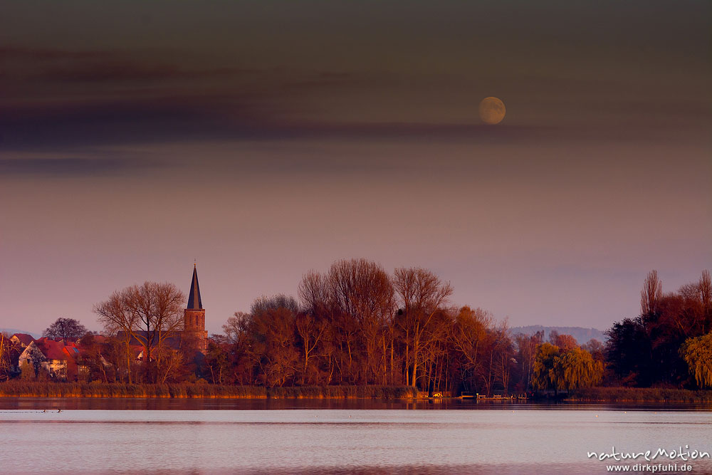 Mond über Bernshausen, Seeufer, Abendlicht, Seeburger See, ...