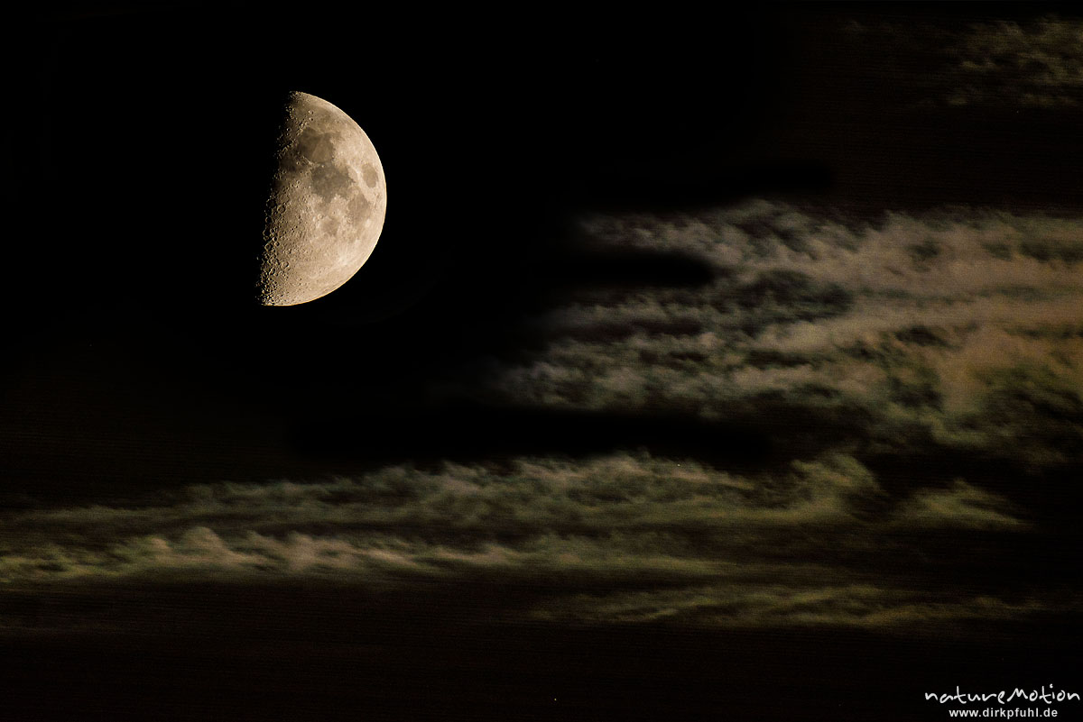 Halbmond mit durchziehenden Wolken, Göttingen, Deutschland ...