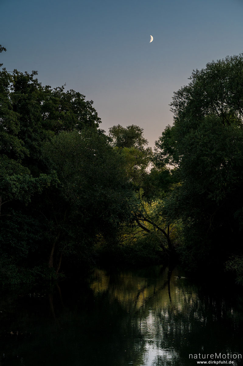 Mond über der Leine, Flüthewehr, Göttingen, Deutschland ...