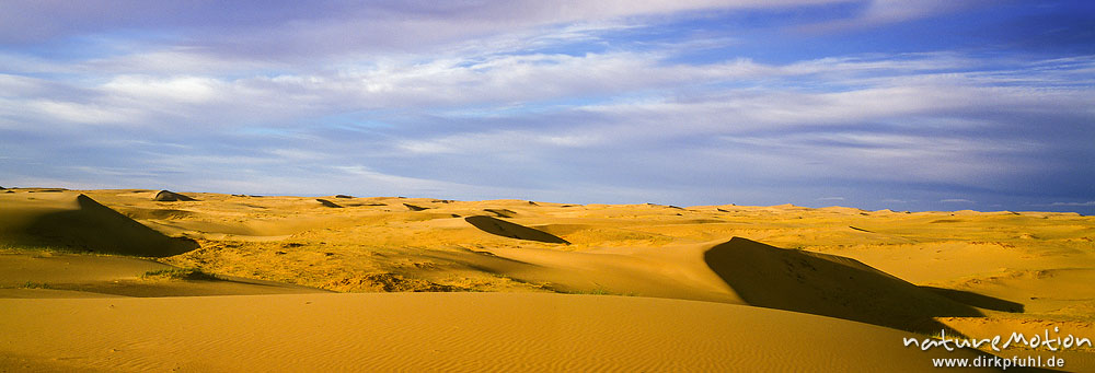 Dünen von Mongol Els im Abendlicht, Sandrippel, Mongol Els, ...