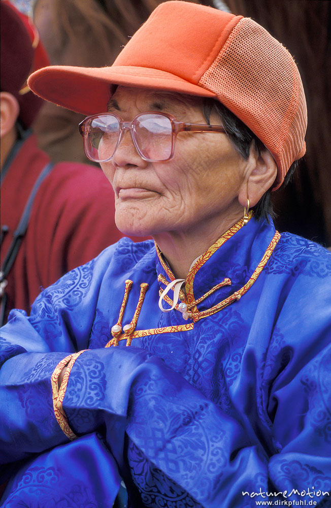 alter Mann in Festkleidung, faltiges Gesicht, , Mongolei ...