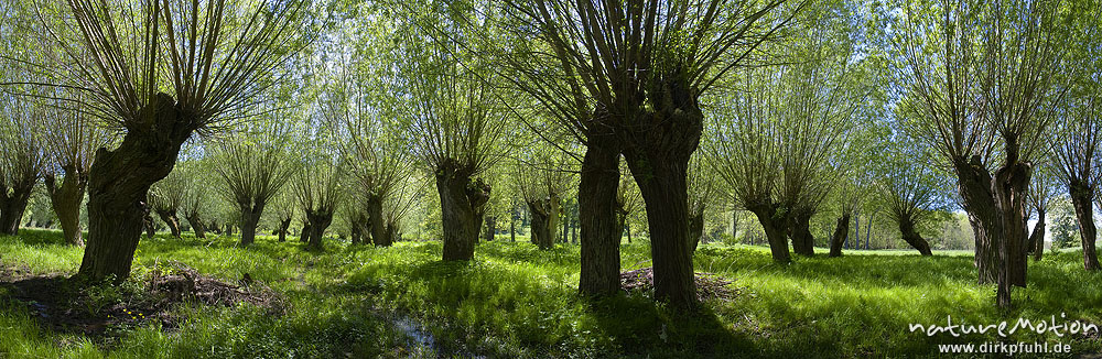 Kopfweiden an Bachlauf, Weichholzaue an der Unstrut, Natursc ...