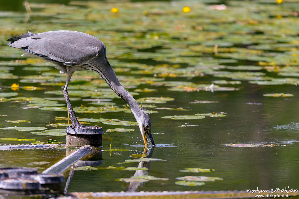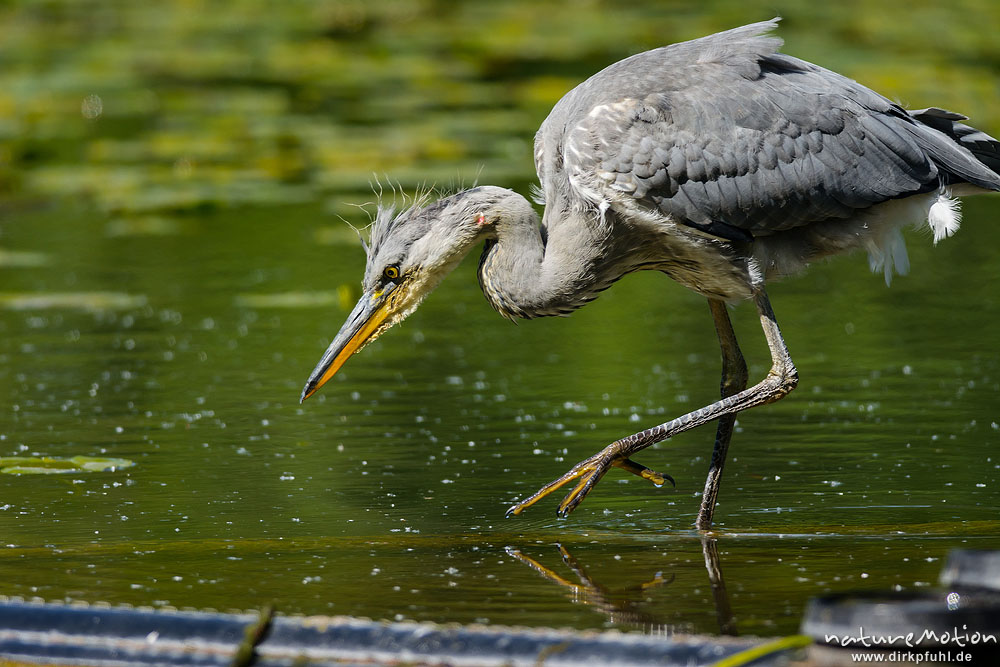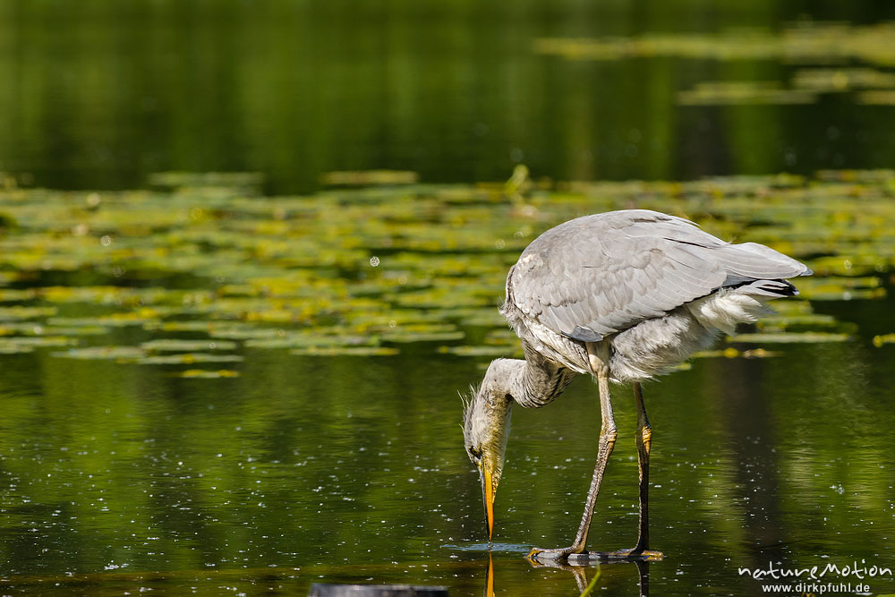 Graureiher, Ardea cinerea, Ardeidae, Jungtier auf Nahrungssu ...