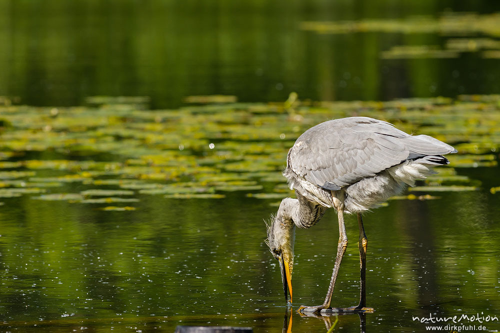 Graureiher, Ardea cinerea, Ardeidae, Jungtier, Gefiederpfleg ...