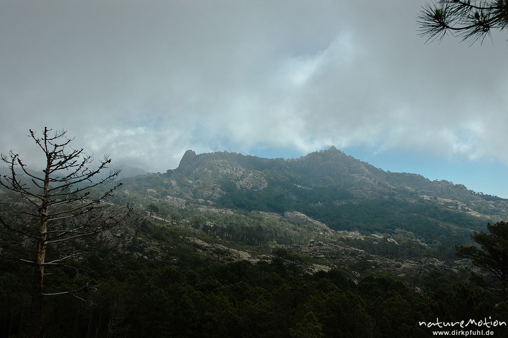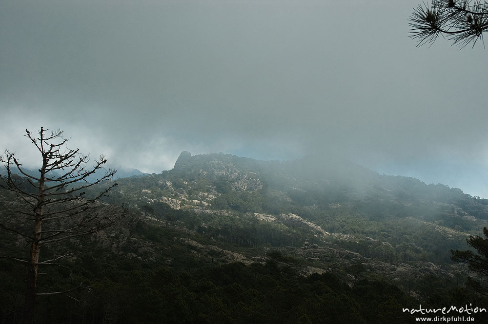 nebelverhangene Berge, Bavella-Gruppe, Korsika, Frankreich ...